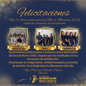 🎉 ¡FELICITACIONES A LAS ÁREAS DESTACADAS EN LAS ENCUESTAS DE SATISFACCIÓN! 🎉 Queremos reconocer y felicitar a todas las